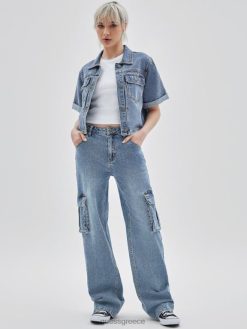 GUESS για άνδρες και γυναίκες αυθεντικό ριγέ cropped πουκάμισο μπλε πολυ ενδύματα J46DJ1280
