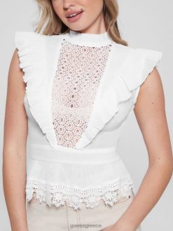 GUESS γυναίκες τίνα υφαντή μπλούζα καθαρό λευκό ενδύματα J46DJ1302