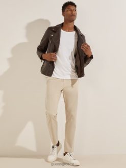 GUESS άνδρες δερμάτινο biker jacket Μπραουνι σοκολάτας ενδύματα J46DJ4106
