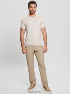 GUESS άνδρες κεντημένο μπλουζάκι με λογότυπο κρέμα βανίλιας ενδύματα J46DJ4075