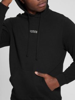 GUESS άνδρες κουκούλα με κεντημένο λογότυπο eco roy μαύρος ενδύματα J46DJ4167