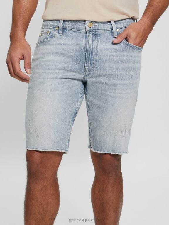 GUESS άνδρες slim κατεστραμμένο τζιν σορτς οπτικό λευκό καταστρέφουν ενδύματα J46DJ3998