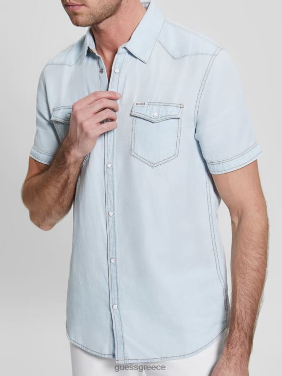 GUESS άνδρες τζιν γουέστερν πουκάμισο truckee ψευδαισθήσεις ενδύματα J46DJ3987