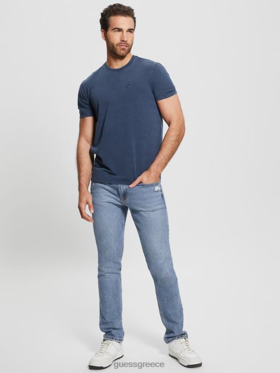 GUESS άνδρες eli πλυμένο μπλουζάκι μαυρισμένο μπλε multi ενδύματα J46DJ4163