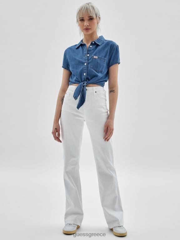 GUESS για άνδρες και γυναίκες αυθεντικό τζιν πουκάμισο με γραβάτα μπροστά πήγαινε πλύσιμο μεσαίου ρουθίου ενδύματα J46DJ1356