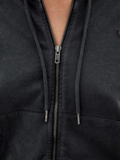 GUESS για άνδρες και γυναίκες γνήσιο λογότυπο με κουκούλα με φερμουάρ jet black multi ενδύματα J46DJ2474