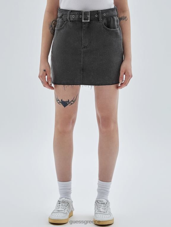 GUESS για άνδρες και γυναίκες πρωτότυπη τζιν φούστα με ζώνη πάει πλυμένο γκρι ενδύματα J46DJ144