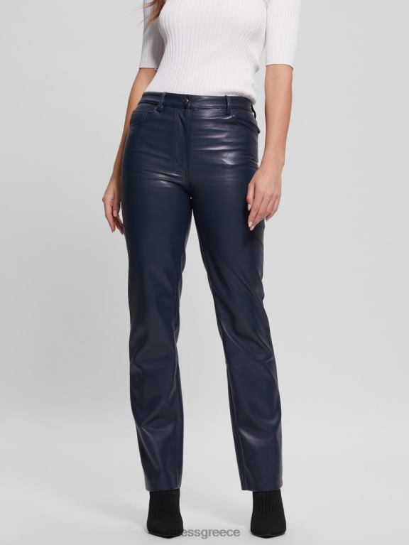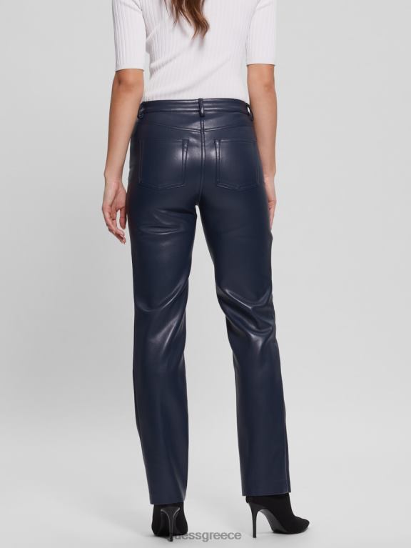 GUESS γυναίκες ίσιο παντελόνι kelly από συνθετικό δέρμα μαυρισμένο μπλε ενδύματα J46DJ2294