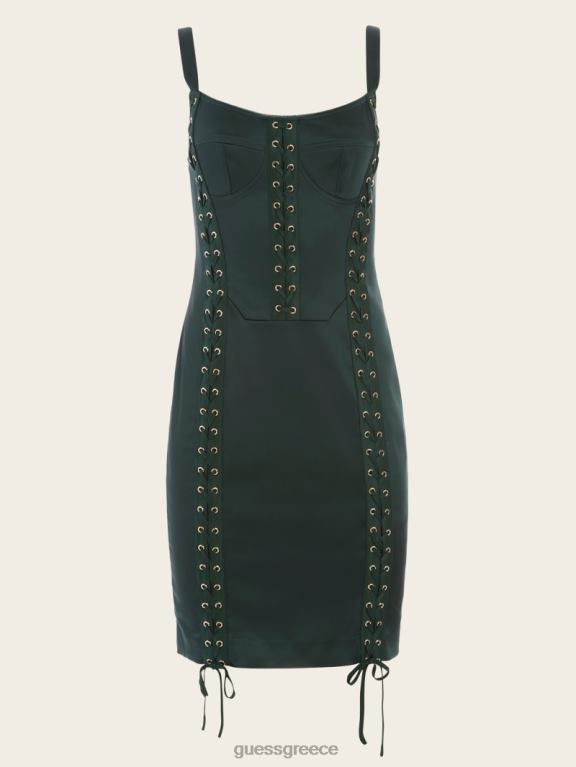 GUESS γυναίκες αναγεννησιακό φόρεμα με κορδόνια πράσινο σενίλ ενδύματα J46DJ581