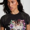 GUESS γυναίκες Τίγρη μπλουζάκι με στρας φθινοπωρινή ανθοφορία ενδύματα J46DJ964