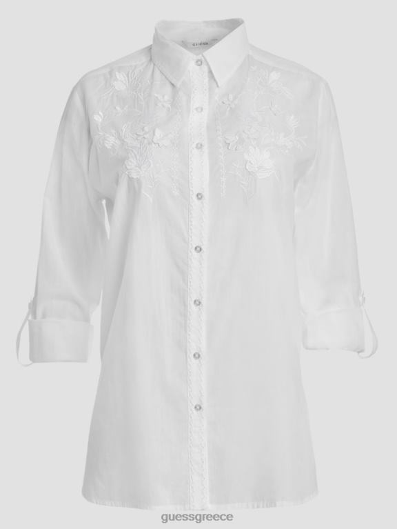 GUESS γυναίκες βαμβακερό πουκάμισο με κέντημα νάντια καθαρό λευκό ενδύματα J46DJ1165