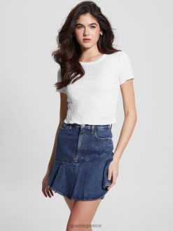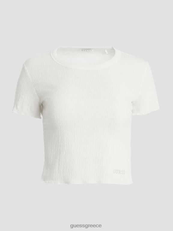GUESS γυναίκες καπνιστό μπλουζάκι μωρού καθαρό λευκό ενδύματα J46DJ1169
