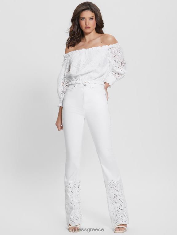 GUESS γυναίκες κεντημένο φαρδύ παντελόνι καθαρό λευκό ενδύματα J46DJ98