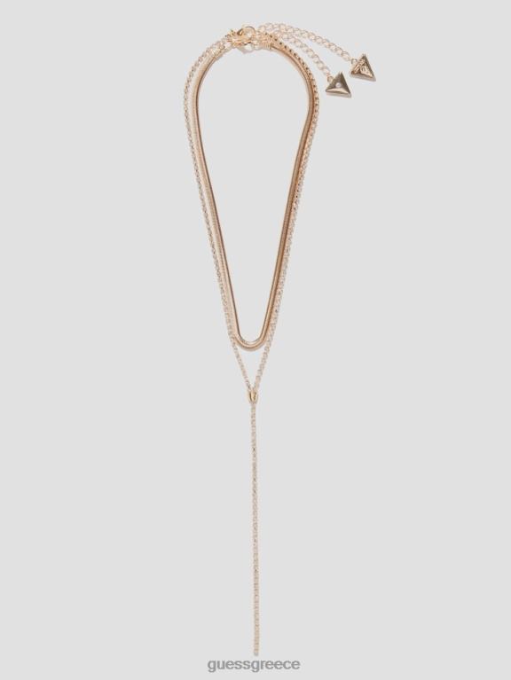 - κολιέ με στρώσεις σε χρυσό τόνο με κοντή αλυσίδα φιδιού και μακρύτερο δεσμό αλυσίδας σε στυλ y με κρύσταλλο στο κεντρικό σημείο