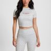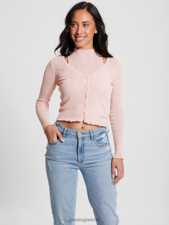 GUESS γυναίκες κροπ μπλουζάκι mock λαιμόκοψης ντάλια χαμηλών τόνων ροζ lurex ενδύματα J46DJ1104