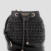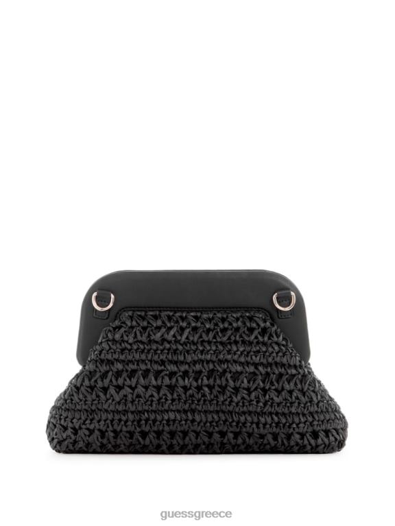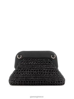 GUESS γυναίκες λιγουρία βελονάκι από άχυρο σκελετό συμπλέκτη μαύρο φλοράλ στάμπα σακούλες J46DJ2937