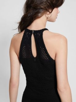GUESS γυναίκες μάξι φόρεμα με κροσέ amelie μαύρος ενδύματα J46DJ346