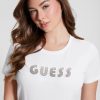 GUESS γυναίκες οικολογικό μπλουζάκι ντίσκο με λαιμόκοψη καθαρό λευκό ενδύματα J46DJ1277