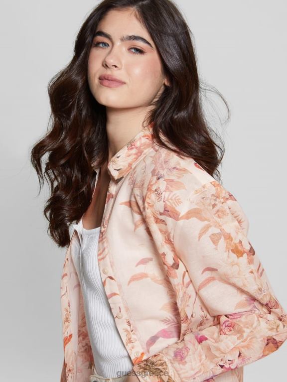 GUESS γυναίκες οικολογικό ροζ λινό τοπ ανακτημένος ρομαντισμός ενδύματα J46DJ1136