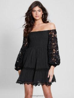 GUESS γυναίκες οικολογικό φόρεμα katerina off-the-shoulder μαύρος ενδύματα J46DJ333