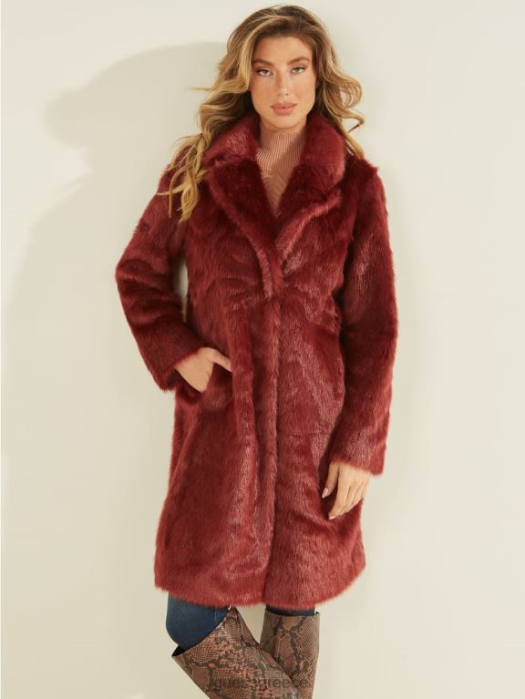 GUESS γυναίκες παλτό από ψεύτικη γούνα marisol ρουμπινί μερλό ενδύματα J46DJ1932