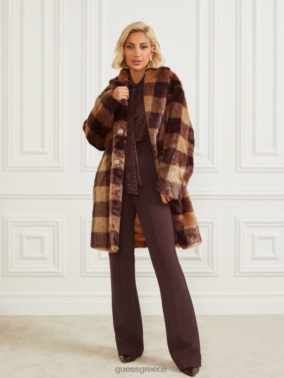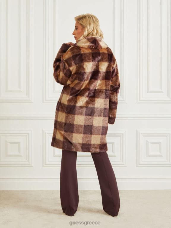 GUESS γυναίκες παλτό rochelle καμήλα και σκούρο μπέρμπον ενδύματα J46DJ1854