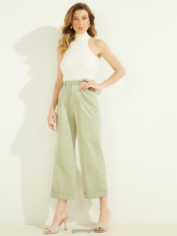 GUESS γυναίκες παντελόνι matilde φαρδύ ελαφρύ matcha ενδύματα J46DJ2287