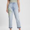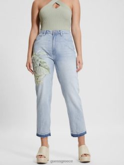 GUESS γυναίκες τζιν μαμά τζιν οικολογικό σατέν λουλούδι ηλιοβασιλέματος ενδύματα J46DJ18