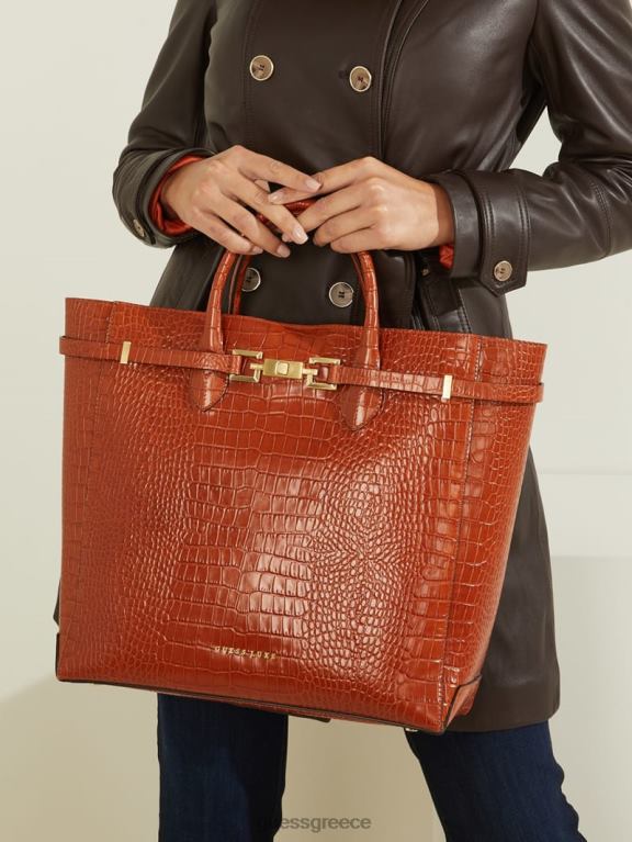 GUESS γυναίκες Cristina croc δερμάτινη tote κονιάκ σακούλες J46DJ3084