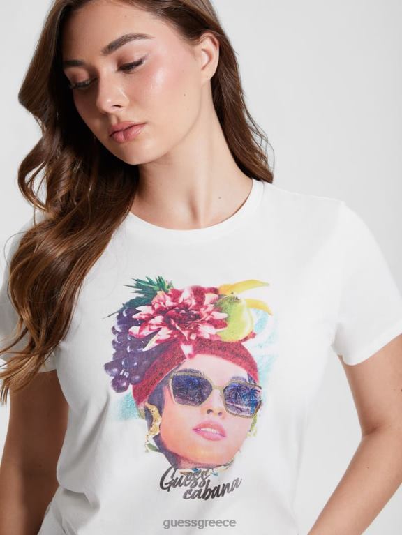 GUESS γυναίκες eco cabana easy tee λευκή κρέμα ενδύματα J46DJ1187