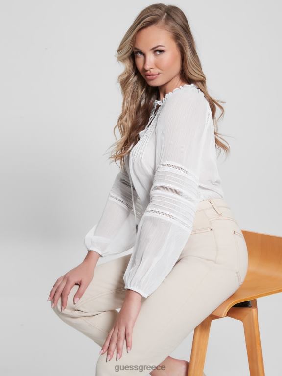 GUESS γυναίκες eco gilda διαφανής μακρυμάνικη μπλούζα καθαρό λευκό ενδύματα J46DJ1240