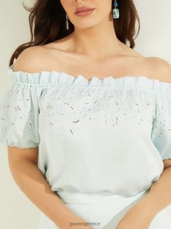 GUESS γυναίκες eco paradiso κεντημένο τοπ ειρηνικός ουρανός ενδύματα J46DJ1534