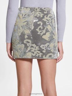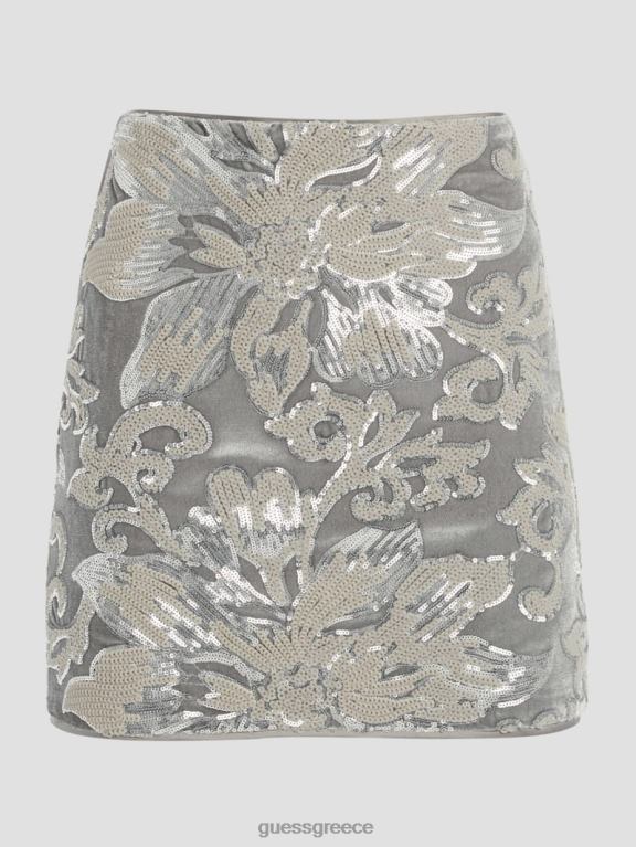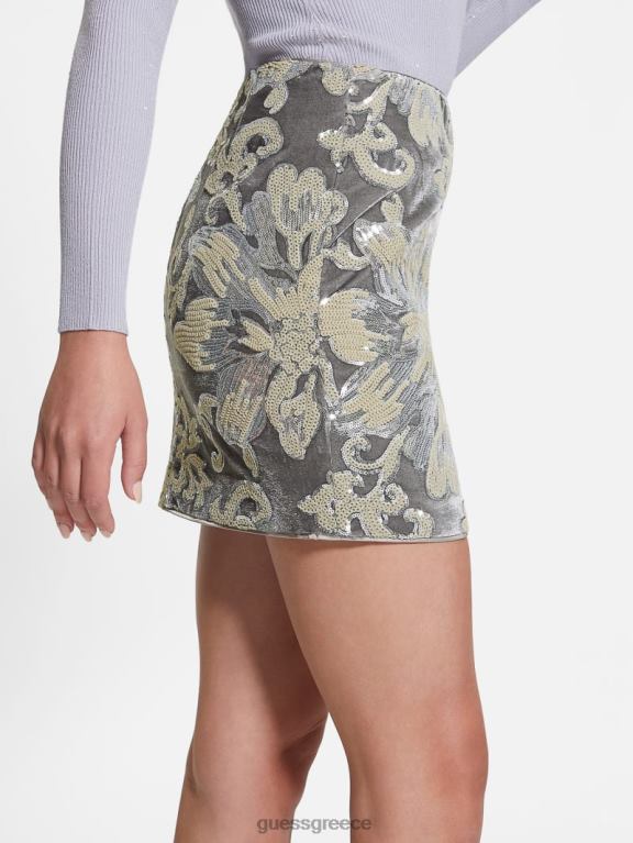 GUESS γυναίκες ernesta στολισμένη βελούδινη φούστα παγιέτες λουλουδιών embro ασημί ενδύματα J46DJ2398