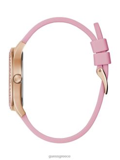 GUESS γυναίκες glitter διαφανές λογότυπο αναλογικό ρολόι σιλικόνης ροζ χρυσός αξεσουάρ J46DJ3636