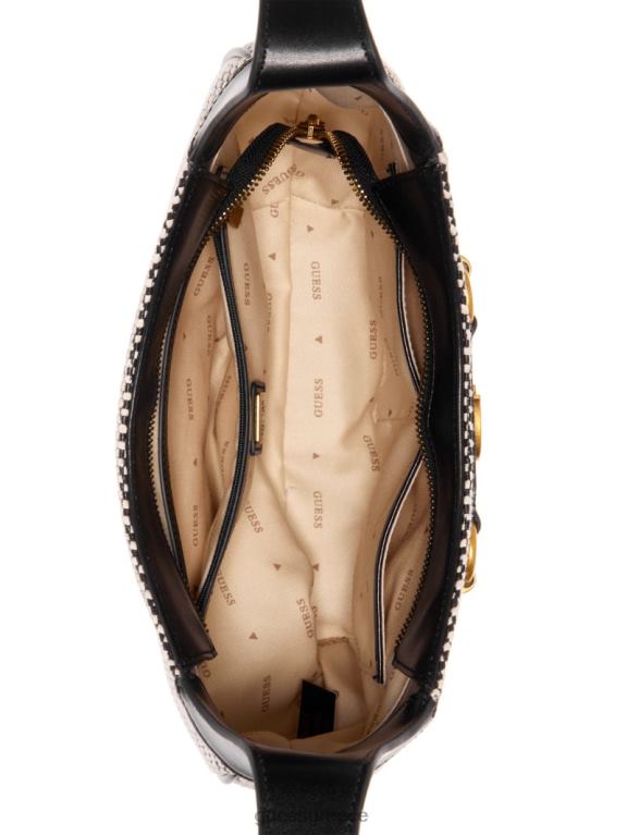 GUESS γυναίκες izzy raffia hobo bag μαύρο γυαλιστερό νικέλιο σακούλες J46DJ3044