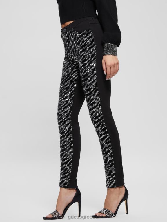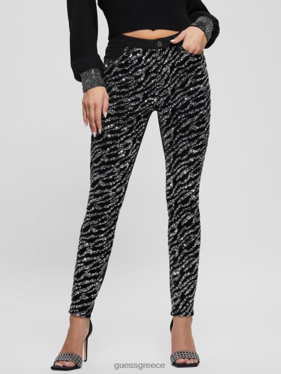 GUESS γυναίκες Skinny τζιν με παγιέτες τίγρης του 1981 glam ασημί tiger ενδύματα J46DJ220