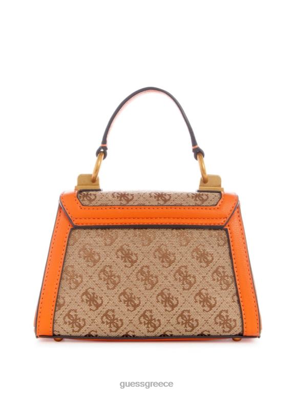 GUESS γυναίκες Stephi jacquard logo mini τσάντα λογότυπο latte/πορτοκαλί σακούλες J46DJ2983