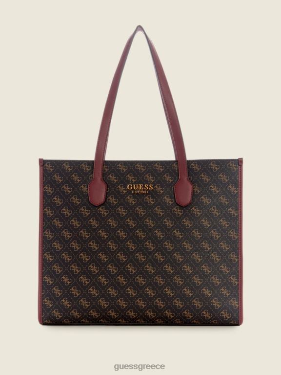 GUESS γυναίκες Tote με λογότυπο silvana καφέ λογότυπο/merlot σακούλες J46DJ3241